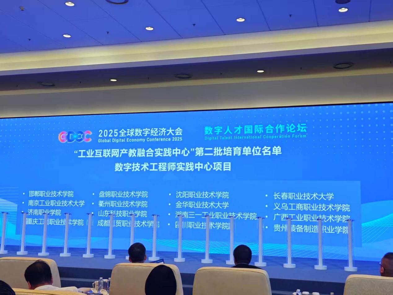 计算机学院受邀出席2025年7月4日下午在北京举办的2025全球数字经济大会数字人才国际合作论坛,我院工业互联网技术专业自2023年开设以来,已经为社会培养大批高端技能人才,因建设成效突出入选“工业互联网产教融合实践中心”建设单位。