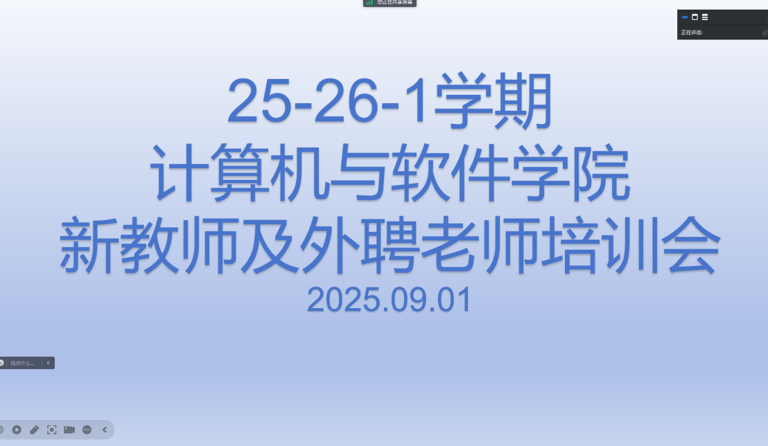为夯实新教师教学基础,规范外聘教师教学行为,2025年9月1日晚,计算机与软件学院组织召开了2025-2026-1学期新教师及外聘教师培训会,学院教学副院长马浩、首次授课专任教师、全体外聘教师及相关工作人员参加会议。