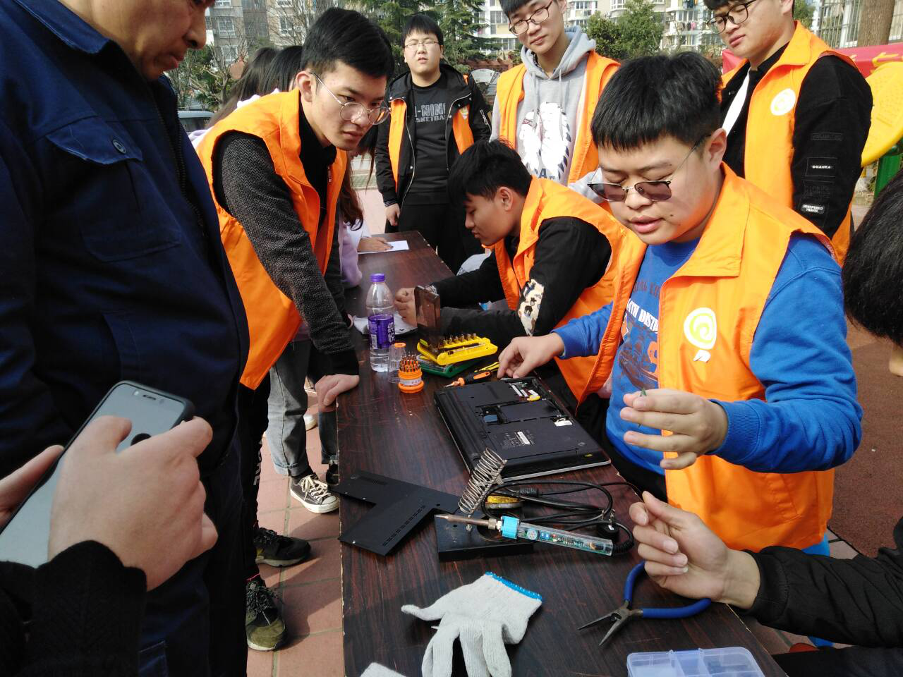 为推进南工院2019年“学雷锋活动月”暨“社会主义核心价值观宣传月”系列活动的深入开展, 3月6日下午,计算机与软件学院团总支实践部、计算机协会的青年志愿者们利用课余时间在五福家园社区广场开展了“志愿行动 与爱同行”电脑手机义务维修社区行活动,此活动作为学院“学雷锋活动月”的系列活动之一。
