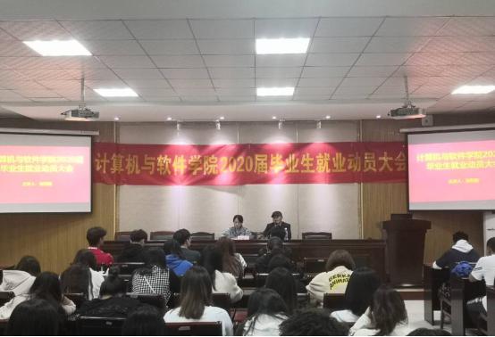 为帮助学院毕业生了解就业形势,树立正确的就业观和择业观,10月16日晚,计算机与软件学院在敬业楼415会议室召开2020届毕业生就业动员大会。计算机与软件学院党总支副书记邹烈刚、毕业班辅导员王倩玉出席本次大会。
