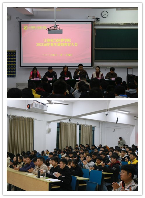 为顺利做好2021届毕业生就业、顶岗实习、离校等各项工作,11月24日,计算机与软件学院在乐群楼J101召开“计算机与软件学院2021届毕业生离校教育大会”。计算机与软件学院党总支书记刘英慧、党总支副书记邹烈刚、副院长郭雷、学院辅导员出席了此次大会。
