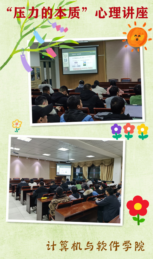 为了增强学生的心理素质,正确应对生活中出现的各类压力,引导学生如何面对并克服压力。计算机与软件学院于2021年12月16日晚18:30,在敬业楼415观看了以“压力的本质 那些你无法察觉的心理冲突”为主题的心理讲座。