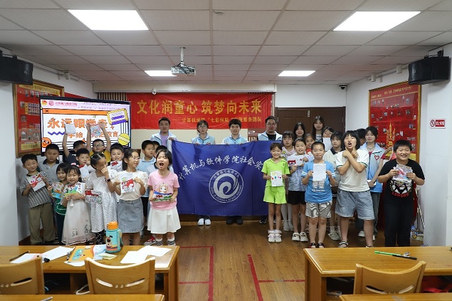 为呵护社区儿童健康成长,解决城市随迁子女暑期“看护难”等问题,充分发挥计算机学院学生志愿服务特色,计算机学院“e”路童行志愿服务团队积极申报2023年全国“七彩假期”志愿服务示范团队并最终成功入选。7月以来,“e”路童行志愿服务团队先后来到“双百共建”基地——南京市栖霞街道五福家园社区、尧化街道青田雅居社区、尧胜社区,围绕“增强家国情怀”“启蒙自我价值”“探寻文化之美”三大课程主题,创新开展以传统文化为载体的美育课堂教学形式活动15余次,覆盖社区儿童300余人,以美赋能青少年,以实际行动点亮孩子们的“七彩假期”。