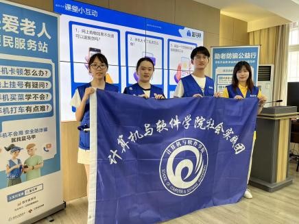 为积极应对人口老龄化,有效帮助老年人跨越“数字鸿沟”,更好地融入数字化智能化社会,增强老年人的幸福感和安全感,切实为全社会形成“敬老、爱老、助老”的良好氛围贡献青春力量,计算机学院“e心”助老实践团立足计算机类专业优势,以阿里巴巴蚂蚁集团-江苏城市频道“零距离”蓝马甲项目为合作平台,2023年7月-8月去往南京市泰山街道津浦社区、秦淮区朝天宫街道止马营社区、大厂街道湖滨社区、尧胜社区等地,开展智慧助老活动10余次,帮助老人数量超过500人次。实践团服务经历也被江苏城市频道零距离、荔枝新闻等平台报道数次。