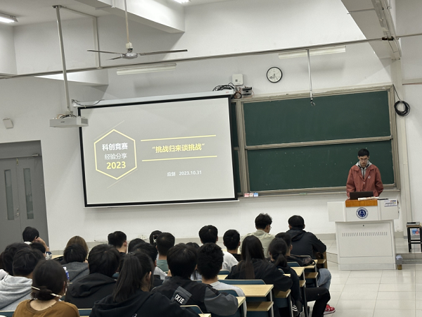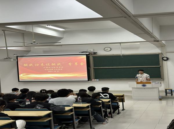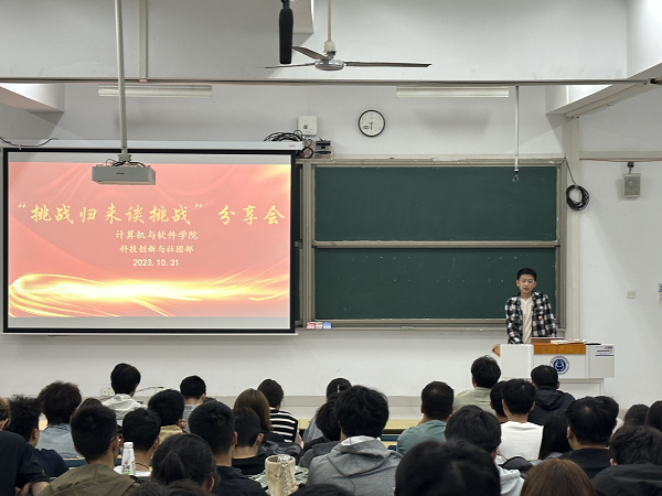 为总结参赛经验、发挥榜样带动作用,同时为广大热爱科创活动的同学提供交流互动的机会,10月31日晚6点,计算机与软件学院团委科技创新与社团部在乐群楼J401开展“挑战归来谈挑战”青春故事分享交流会。本次活动邀请曾参加“挑战杯”、 “发明杯”、ICAN创新创业大赛、建模大赛等科创比赛的优秀学生代表应剑、刘俊杰、陶达明、邓梓俊等作分享。
