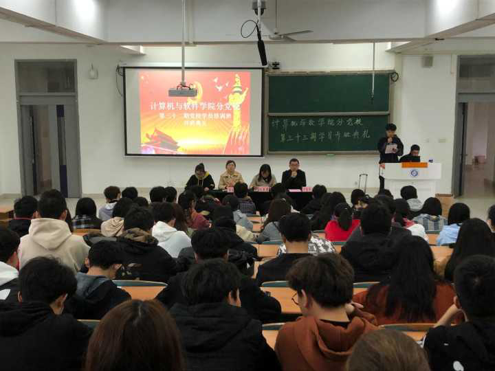 3月21日中午,中共南工院党校计算机与软件学院分校第三十三期学员班开学典礼在乐群楼201阶梯教室隆重举行。计算机与软件学院党总支书记兼党校校长刘英慧老师、师生第二支部书记卞昌军老师、分党校教务、18级辅导员茅晓薇老师以及82名新学员参加了本次开学典礼。